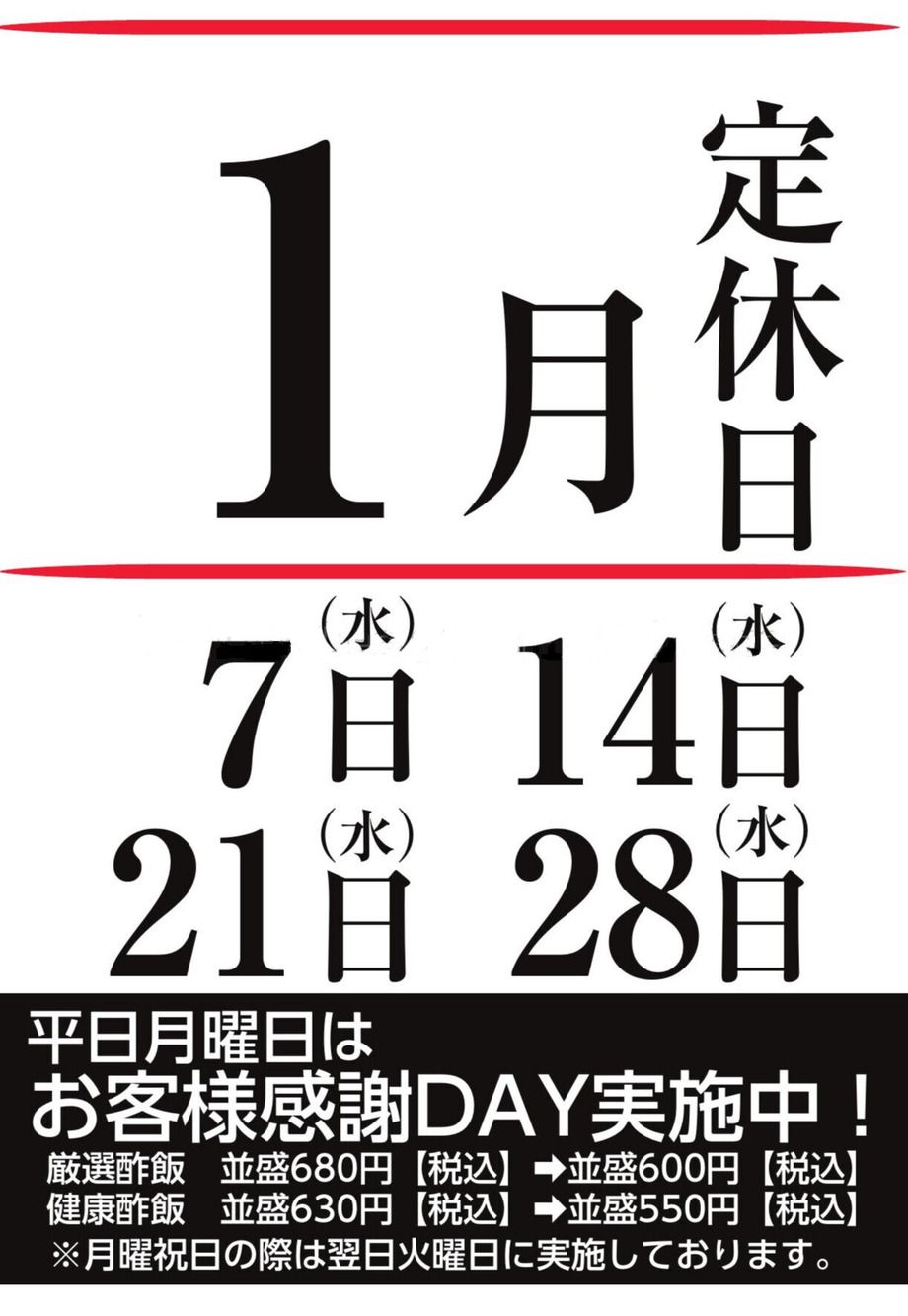 1月も家計応援!!お客様感謝デーを平日月曜日に実施いたします。